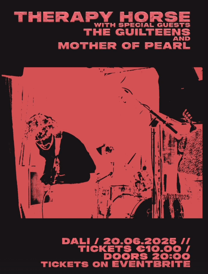 The Cork trio composed of Emily Dollery, Cormac Donovan O’Neill and Eoin Schuch (he’s from Laois, but they don’t talk about that) trace their roots back to UCC FM, when Emily and Cormac hosted rival radio shows. Taking influence from 70’s experimental music, Therapy Horse are expanding their sound to get louder, with new material and Emily learning how to scream without shredding her vocal cords.